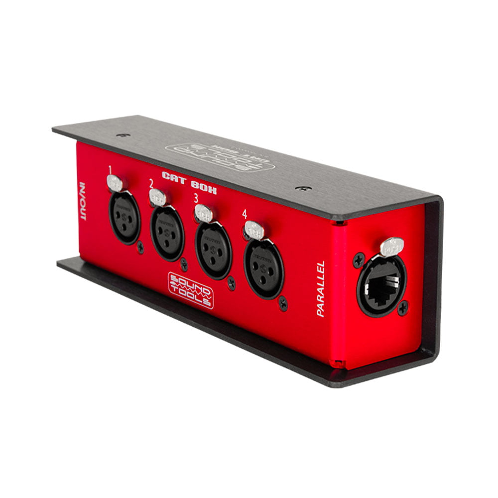 The SoundTools CAT Box is a stage box unit that allows you to run mic level, line level analog, AES3, DMX and/or com down a single Cat5e, Cat6, or Cat7 cable.